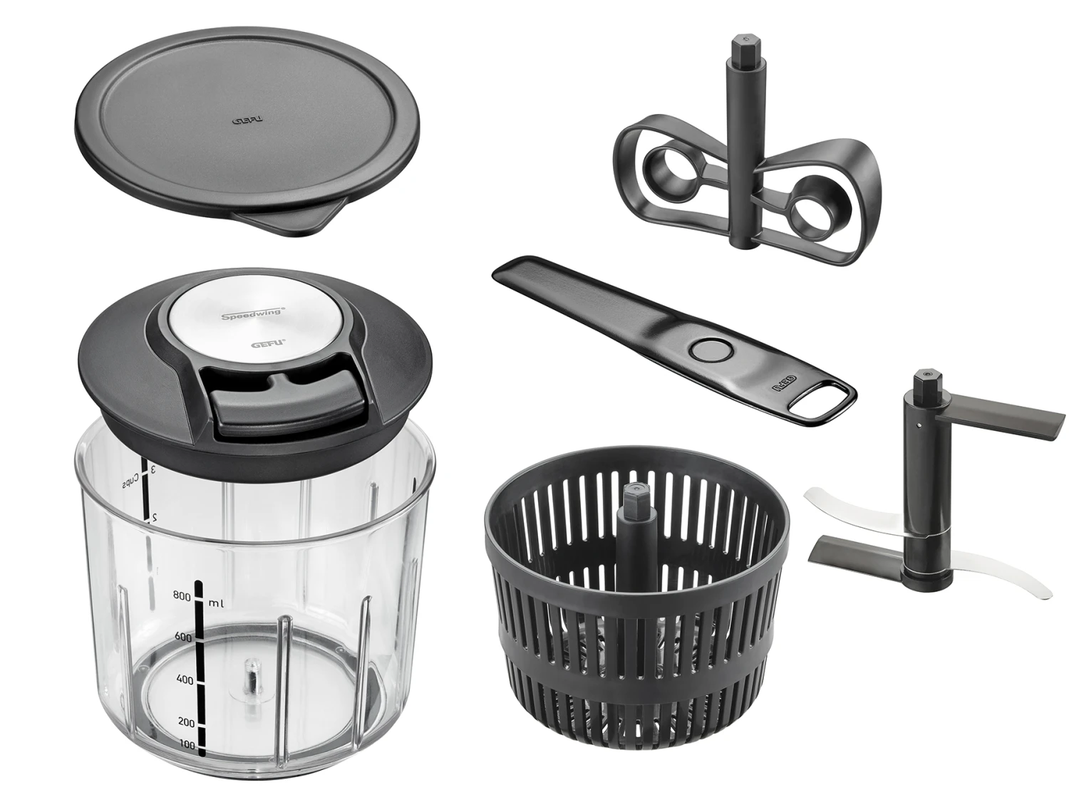 Met de Gefu Hakmolen kunt u eenvoudig groentes mixen, snijden of pureren. Dit doet u door middel van een handig touwmechanisme. De twee zeer scherpe geboge messen zorgen voor een optimaal resultaat. De snijder is gemaakt van kunststof. De twee snij- elementen zijn gemaakt van Japans lemmetstaal en hebben twee gevormde snijvlakken. De capaciteit van de transparante reservoir is 1000 ml. Door de trekmechanisme heeft u geen stroom nodig en kunt u de Gefu multisnijder overal mee naar toe nemen.