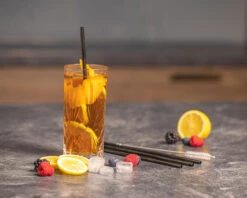 Sareva Herbruikbare Rietjes – Met Borstel – RVS – Gebogen – 4 Stuks