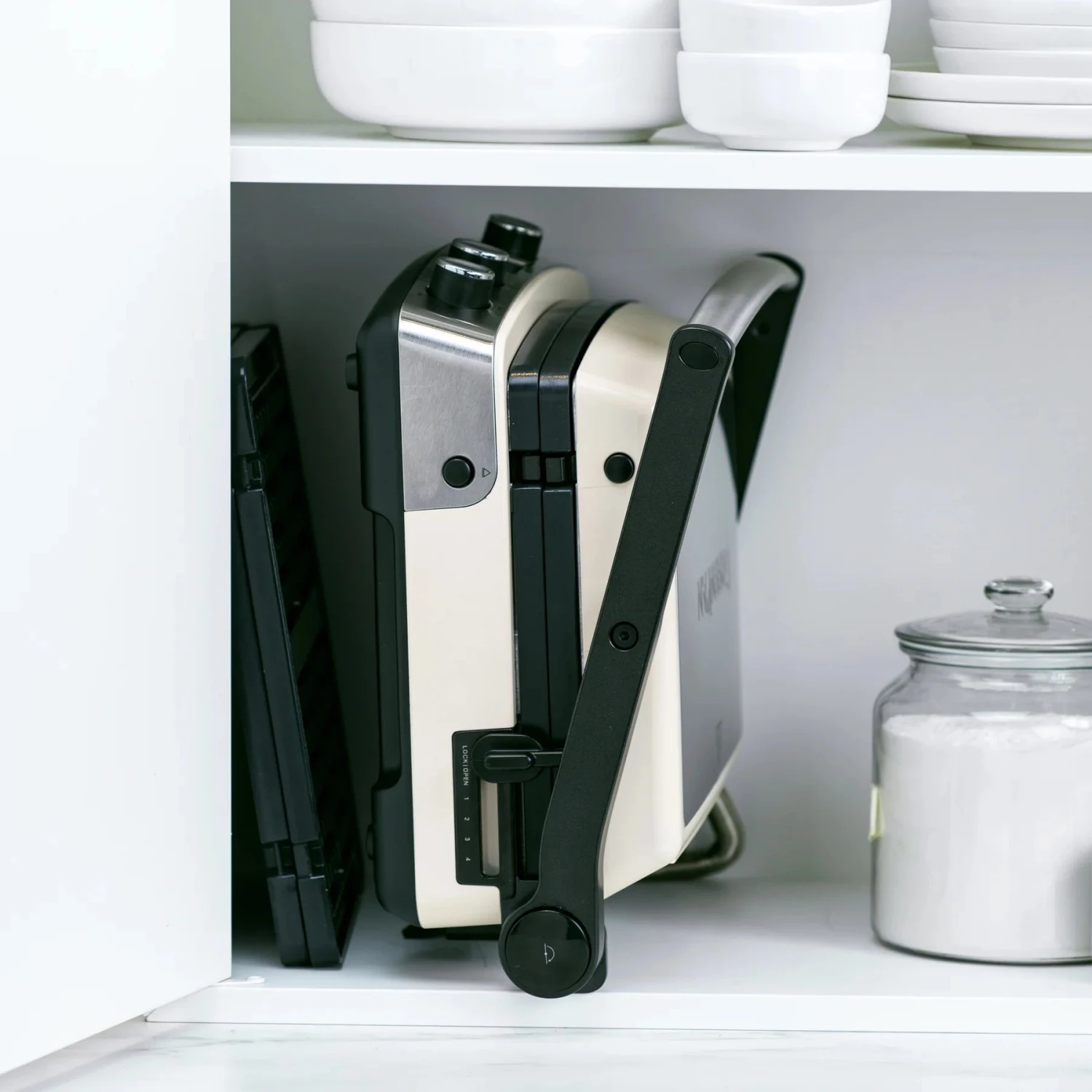 - Het afsluitbare, verstelbare deksel en de ruimte om het snoer op te rollen maken opbergen eenvoudig