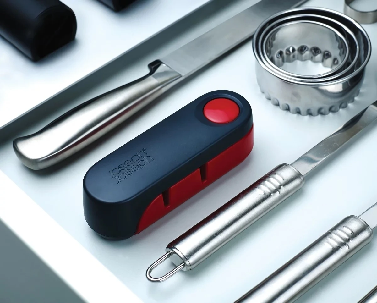 Koken met een scherp mes is essentieël. Voordat jij aan de slag gaat kun je je mes slijpen met de Joseph Joseph messenslijper Rota. Antislipvoeten op de voet zorgen voor extra stabiliteit bij het slijpen.
