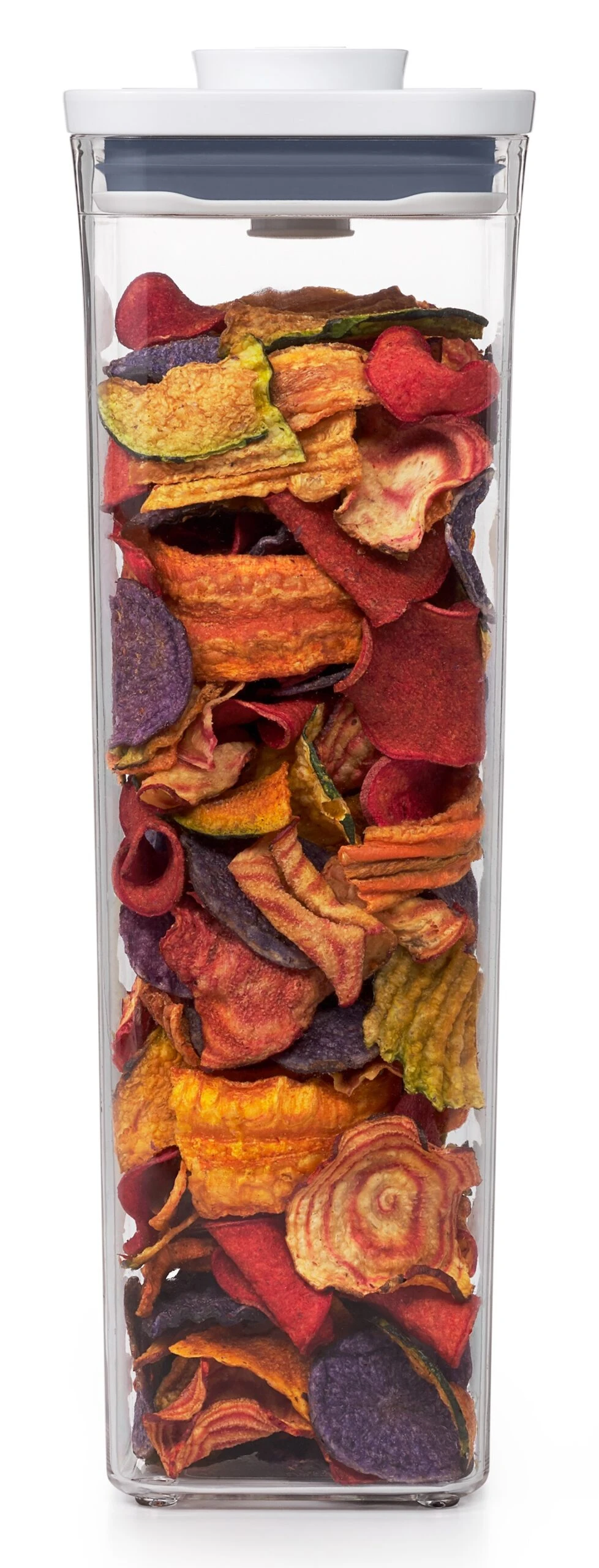 Deze voorraadbus ‘POP 2.0’ van OXO Good Grips sluit luchtdicht af en is ideaal voor het bewaren van droge voedingswaren. Zoals bijvoorbeeld spaghetti en lasagna. Hij doet ook perfect dienst als handige opbergdoos in de garage, naairuimte of speelkamer. Deze POP Container heeft dekseltype C. Met de grote drukknop op de bovenzijde open en sluit je de voorraadbus met één hand. De knop zorgt voor een luchtdichte afsluiting en dient bovendien als handvat om het deksel van de doos te nemen. Onder het deksel is plek om een handige accessoire vast te klikken, zoals een schepje of een datumschijf. Het deksel haal je eenvoudig uit elkaar voor grondig schoonmaken.