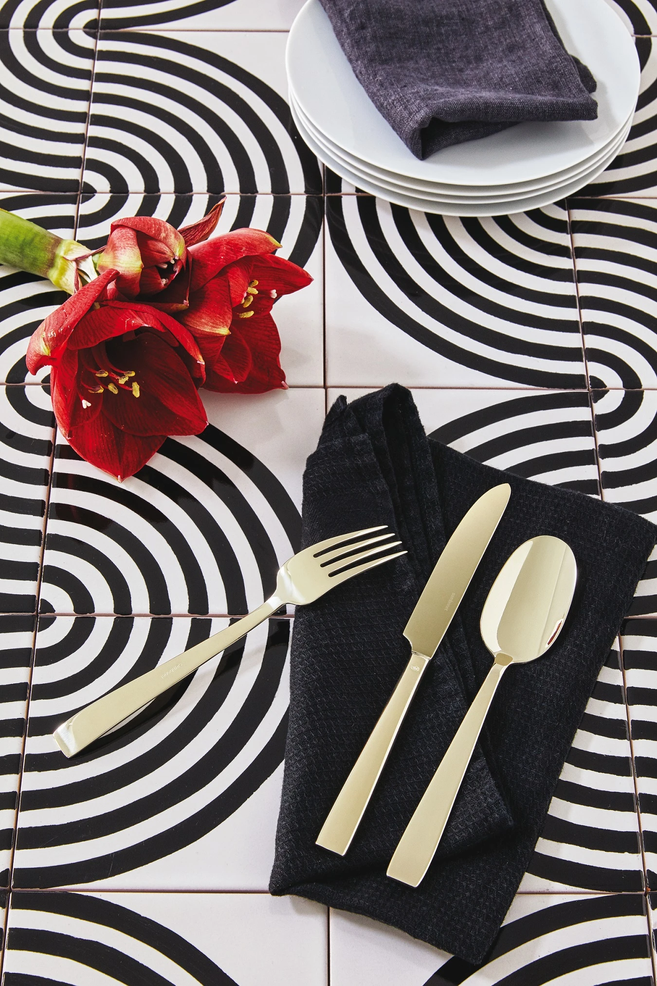 Met het gekleurde Flat bestek van Sambonet ben je verzekerd van een opvallend gedekte tafel! Deze Sambonet bestekset Flat bestaat uit 24 delen, genoeg voor 6 personen. De Sambonet bestekset Flat champagne bevat: