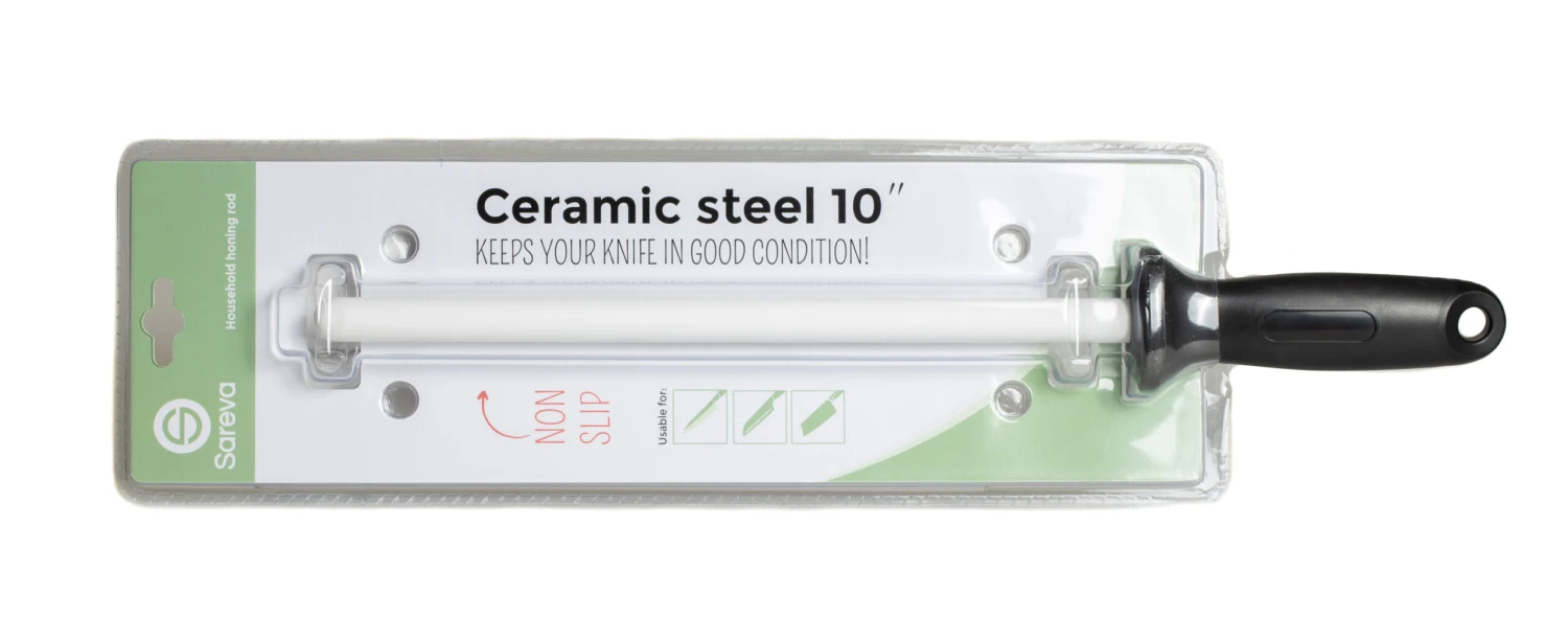 Merk je dat je mes wat moeilijker snijdt? Een paar halen langs de aanzetstaal en je mes is weer als nieuw! Het keramische aanzetstaal is perfect voor het dagelijks onderhouden van je messen. Het is ideaal om goede messen net dat beetje extra scherp te houden. Tijdens het snijden ontstaan er hele kleine braampjes aan de snede. Die oneffenheden zorgen ervoor dat het mes echter veel meer moeite heeft om door het product te snijden omdat er meer weerstand is. Met het keramische aanzetstaal zet je al die braampjes weer recht, waardoor het mes weer soepel door je etenswaren snijdt.