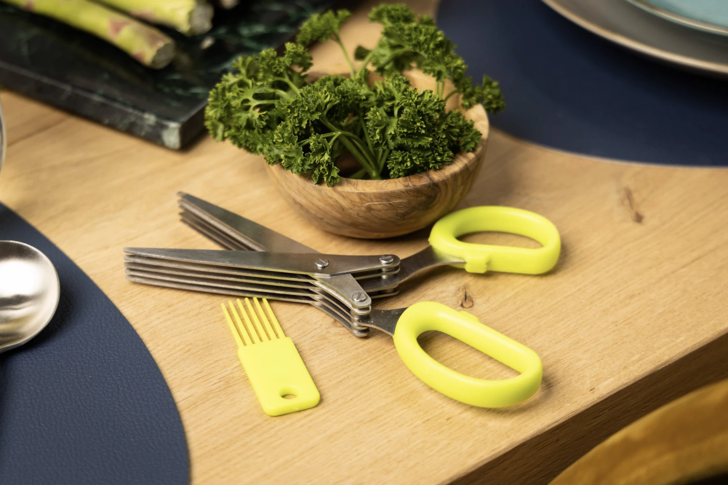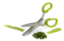 Verse kruiden maken gerechten nog lekkerder! Knip deze kruiden nu eenvoudig fijn, in plaatst van het fijn snijden. Het knippen van kruiden met kruidensnijders en -scharen gaat een stuk gemakkelijker en is in een handomdraai gebeurd. Gebruik hiervoor de Cookinglife Kruidenschaar – 5 messen. Deze kruidenschaar is voorzien van 5 scherp geslepen RVS messen waarmee jij kruiden als bieslook, peterselie of munt fijn kan knippen. Daarnaast word de kruidenschaar geleverd met een klein kammetje, hiermee kan je restjes kruiden die nog in de messen van de schaar blijven zitten gemakkelijk verwijderen.
