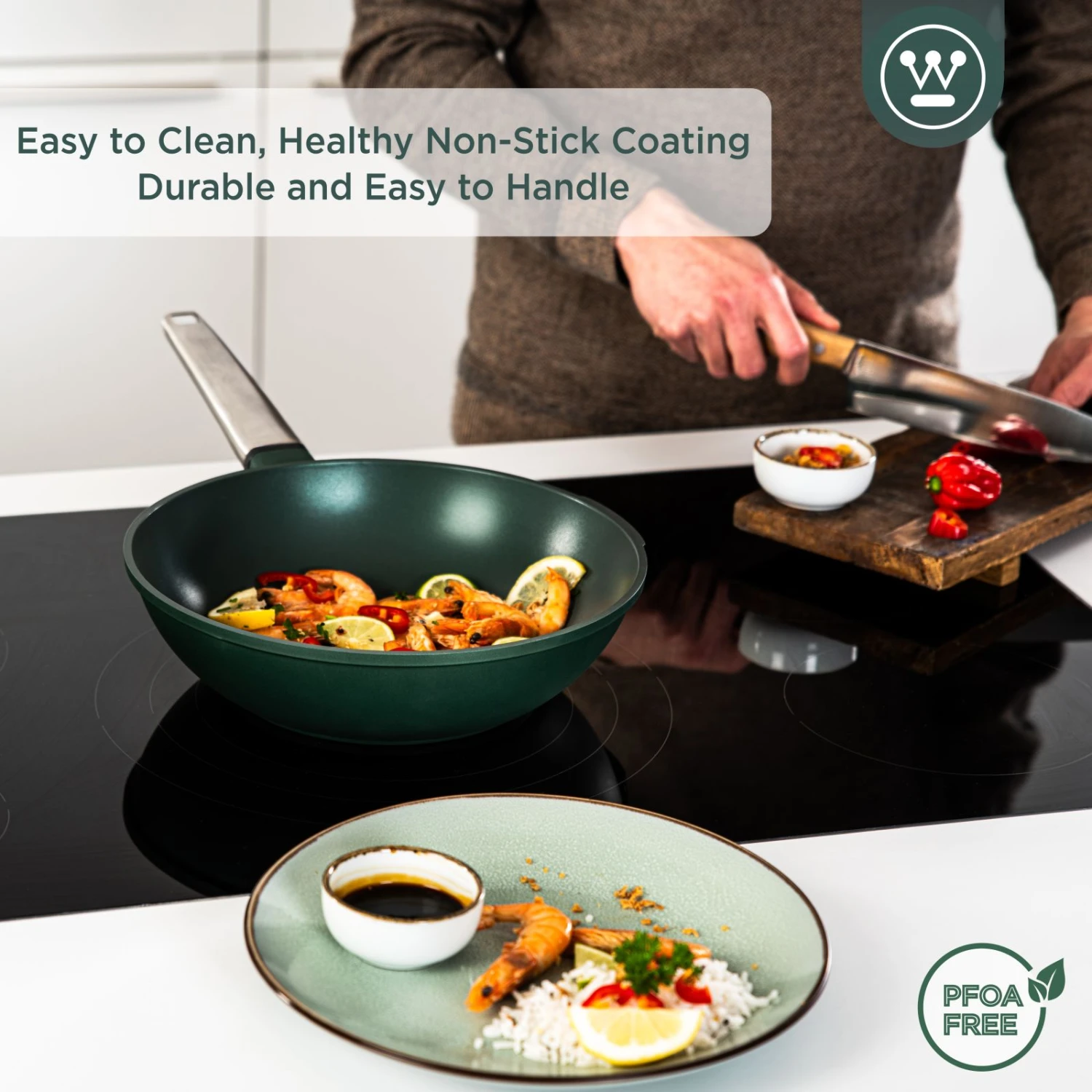 Koken en bakken moet niet alleen leuk en smakelijk zijn, het moet ook veilig gebeuren. De pannen van Westinghouse zijn van hoogwaardige kwaliteit. Deze pannen van de Westinghouse Performance collectie zijn lichtgewicht, hebben een uitstekende warmtegeleiding, bevatten een antiaanbaklaag die PFOA- en PTFE-vrij is en zijn makkelijk schoon te maken in de vaatwasser.