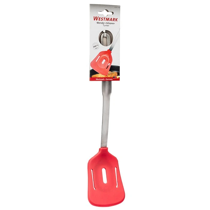 Deze rode siliconen spatel is perfect voor elke pan. Hij is hittebestendig tot wel 260 graden Celsius. Gemaakt van siliconen en RVS, en na gebruik makkelijk schoon te maken in de vaatwasser.